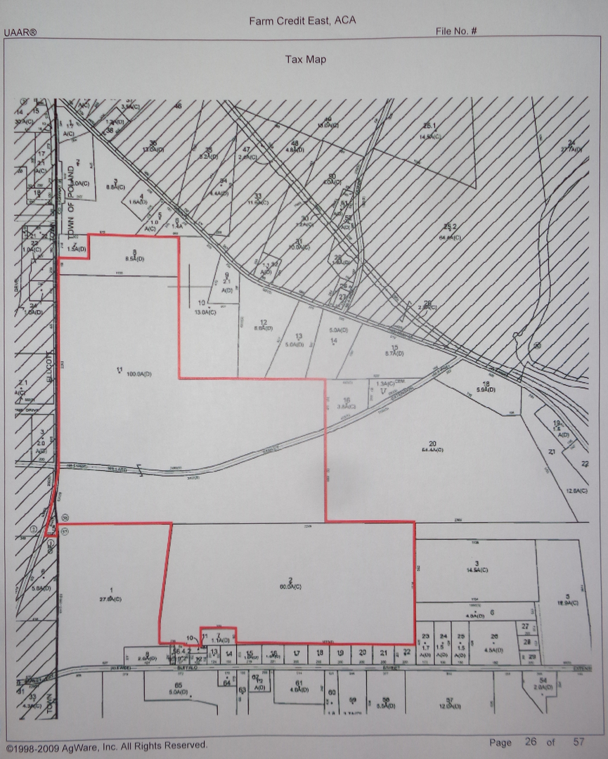 THE [AMES FARM] consists of 169 acres with frontage along the east side of Peck Settlement Road and along both sides of Willard Street Extension. 80.7 acres are cropland with the majority being nearly level well drained soils. There is approximately 20 acres of cropland on the southern end of the property that is capability class III soils with more slope. The cropland is all tiled as needed to improve drainage. There is a large portion of the property that is also utilized as pasture with good quality barbed wire and high tensile fencing. A pond in the pasture supplements the well water supply for livestock, and is also very attractive. Improvements on the property consist of a large brick single family home, a dairy facility, heifer barn, two M/E sheds, and old milk house used as a garage [work shop], and a tenant house. The improvements are well maintained and currently being used. The property includes gas and oil rights, which have been leased with two gas wells on the property that are currently in production. They provide 200,000 MCF free gas to the farmstead and royalties.